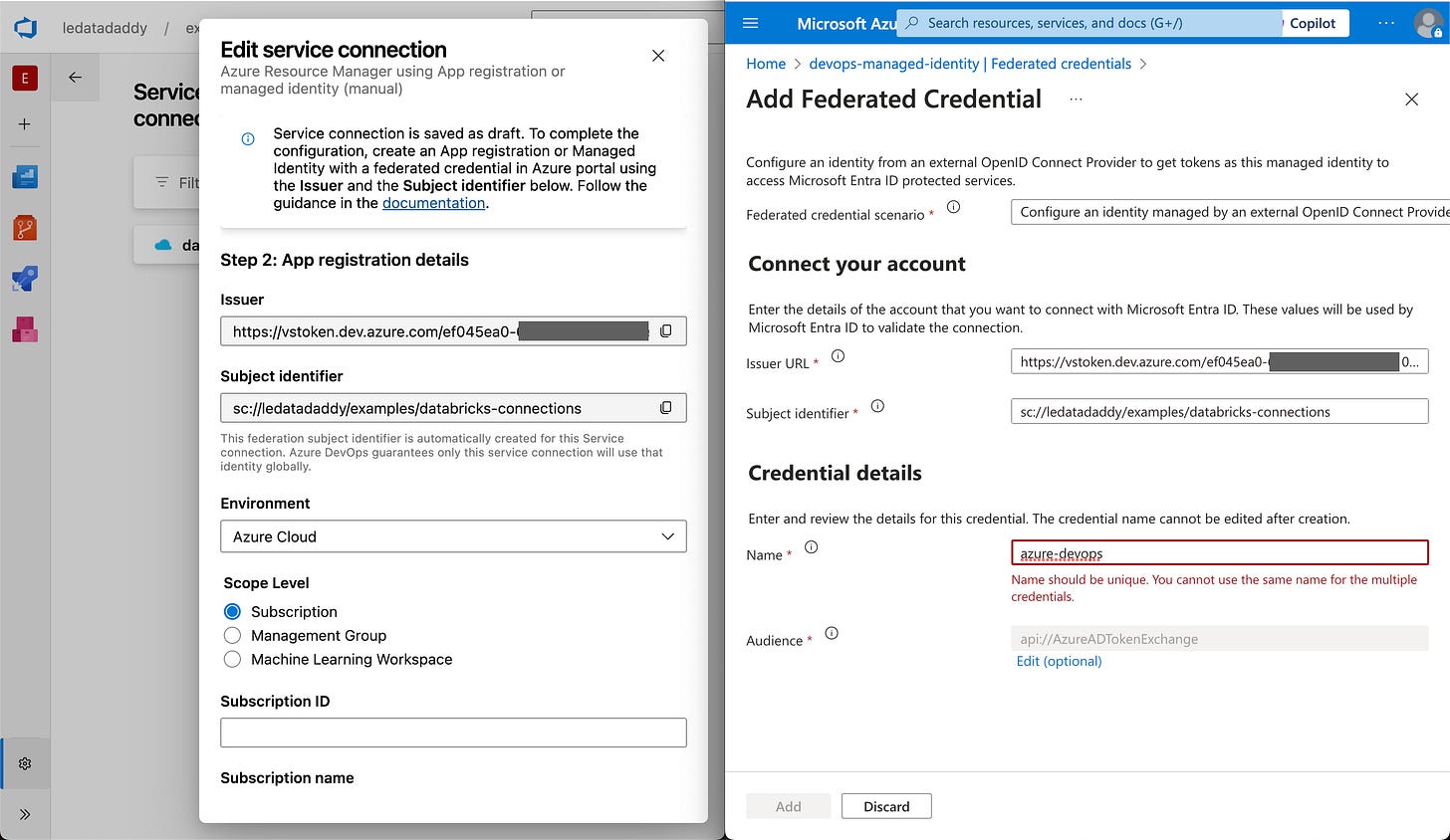 (Service Connection) Subject identifier —> (Federated Credential) Subject identifier.