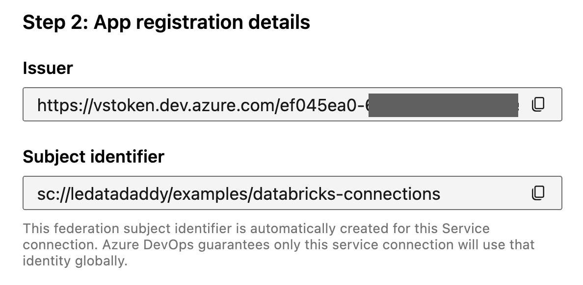 This is the step that links your Azure DevOps service connection and Entra ID, and the one that makes the workload identity federation magic work.